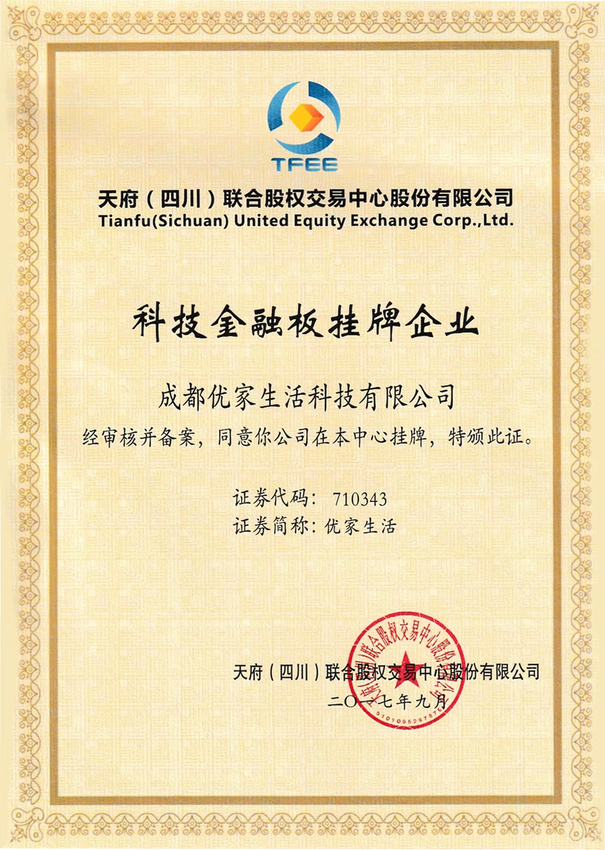 成都優(yōu)家生活科技有限公司目前是四川省房地產(chǎn)業(yè)協(xié)會常務(wù)理事單位,公司總經(jīng)理是四川省房地產(chǎn)業(yè)協(xié)會常務(wù)理事。2015年11月,公司獲得了2015年成都高新區(qū)創(chuàng)業(yè)孵化專項資金的資助。2016年11月,又獲得了成都高新區(qū)創(chuàng)業(yè)孵化專項資金房租補貼的資助。2017年8月,公司在天府股權(quán)交易中心掛牌,并獲得了政府的相關(guān)獎勵。2018年12月,公司通過了國家高新技術(shù)企業(yè)認(rèn)證。